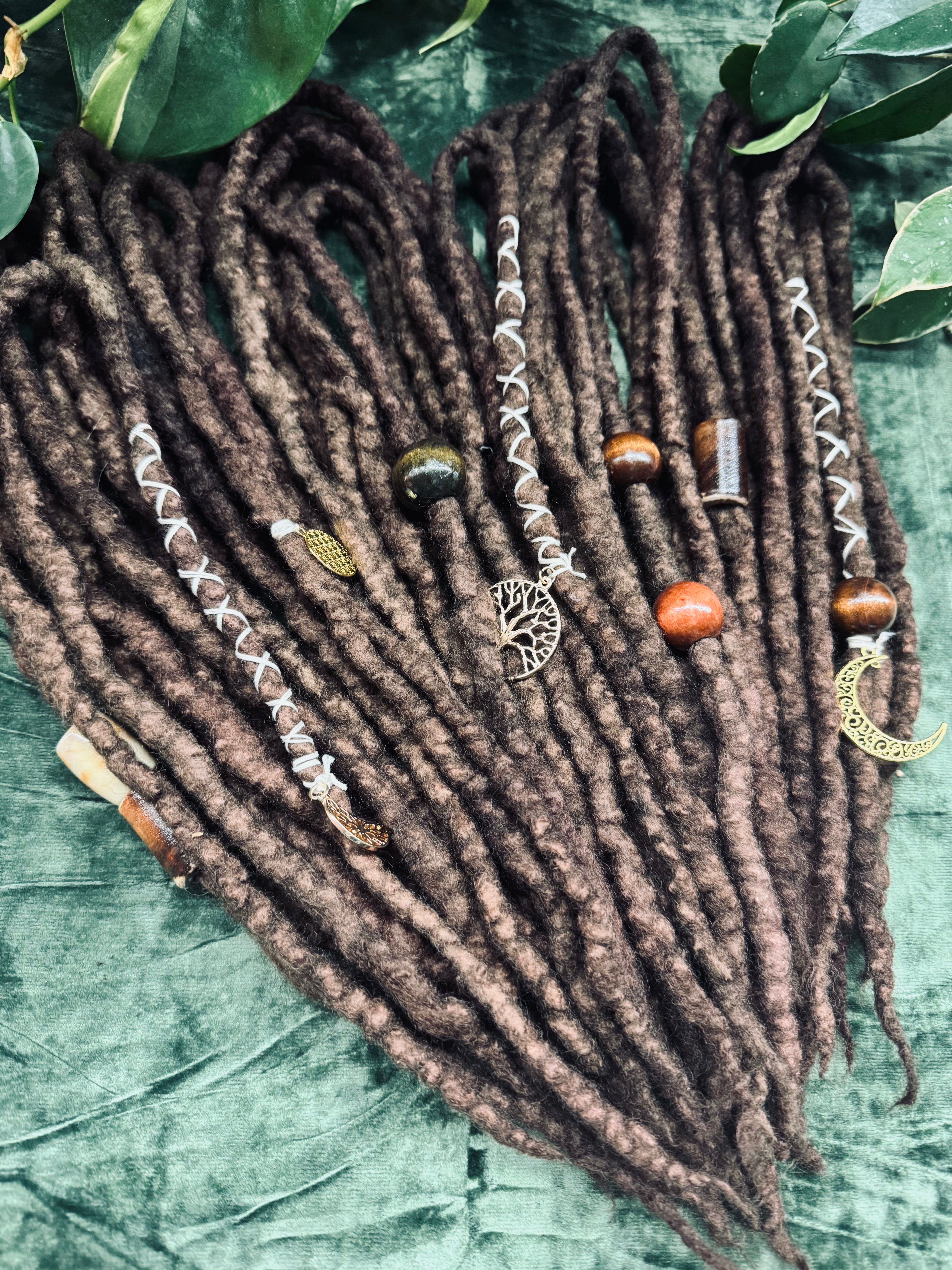 - 28 double-ended wool dreadlocks